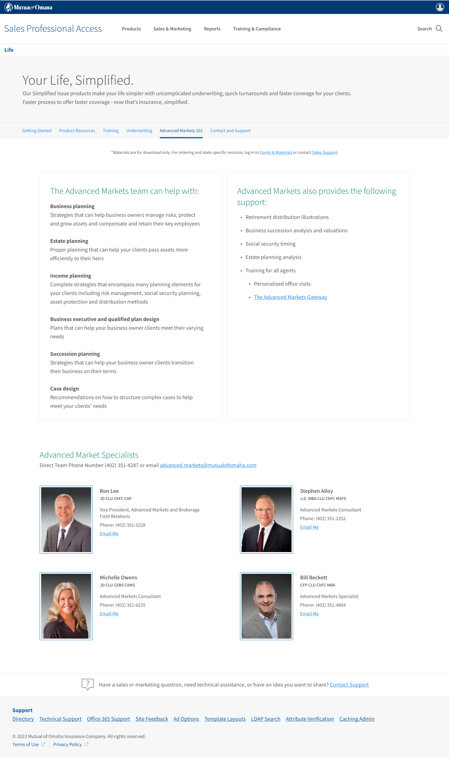 This is the page that underwent the least amount of changes. I focused on prioritizing our most important sections (sales support and technical assistance) as analytics showed they were the most used and looked at.