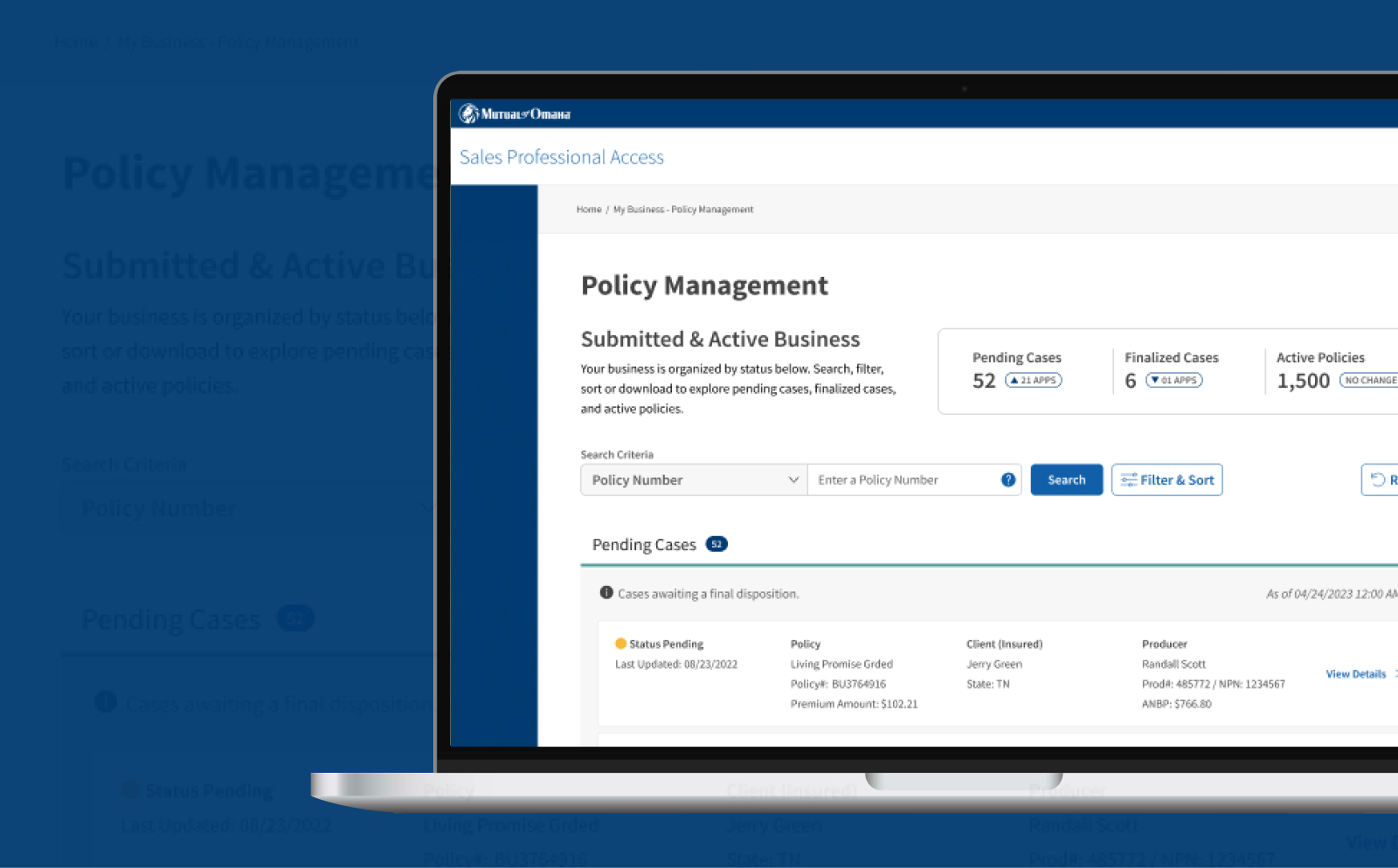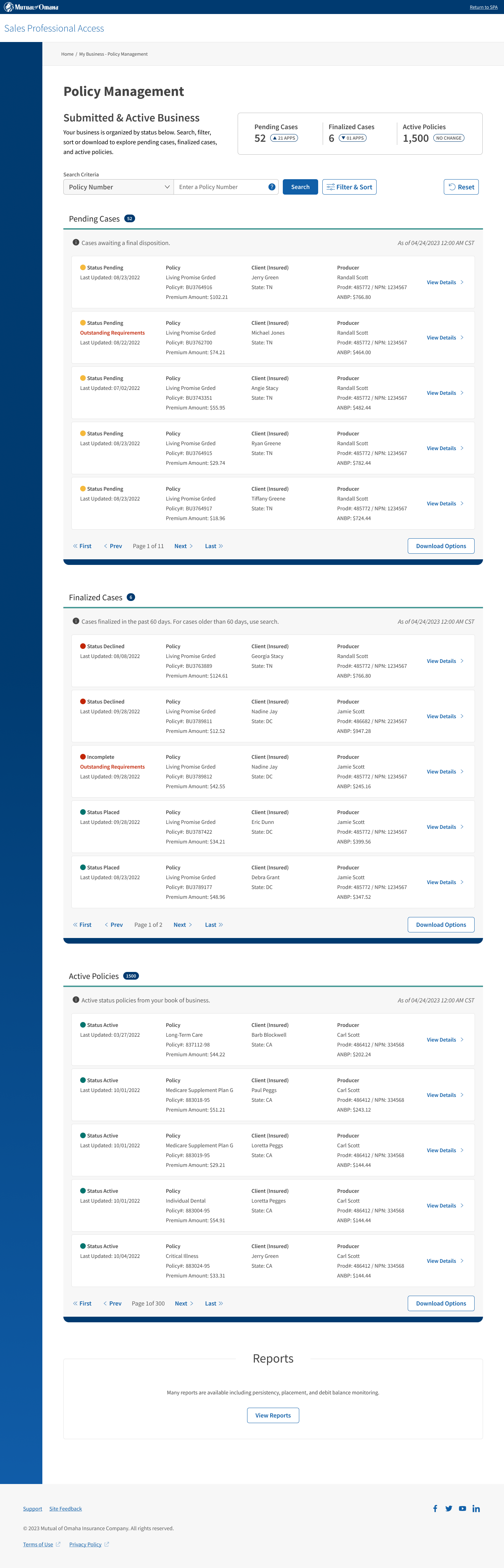 Determing the usability of our reporting and interactive pages by assessing multiple points of Sales Professional Access from both internal support, external back-office, and producer points of view.