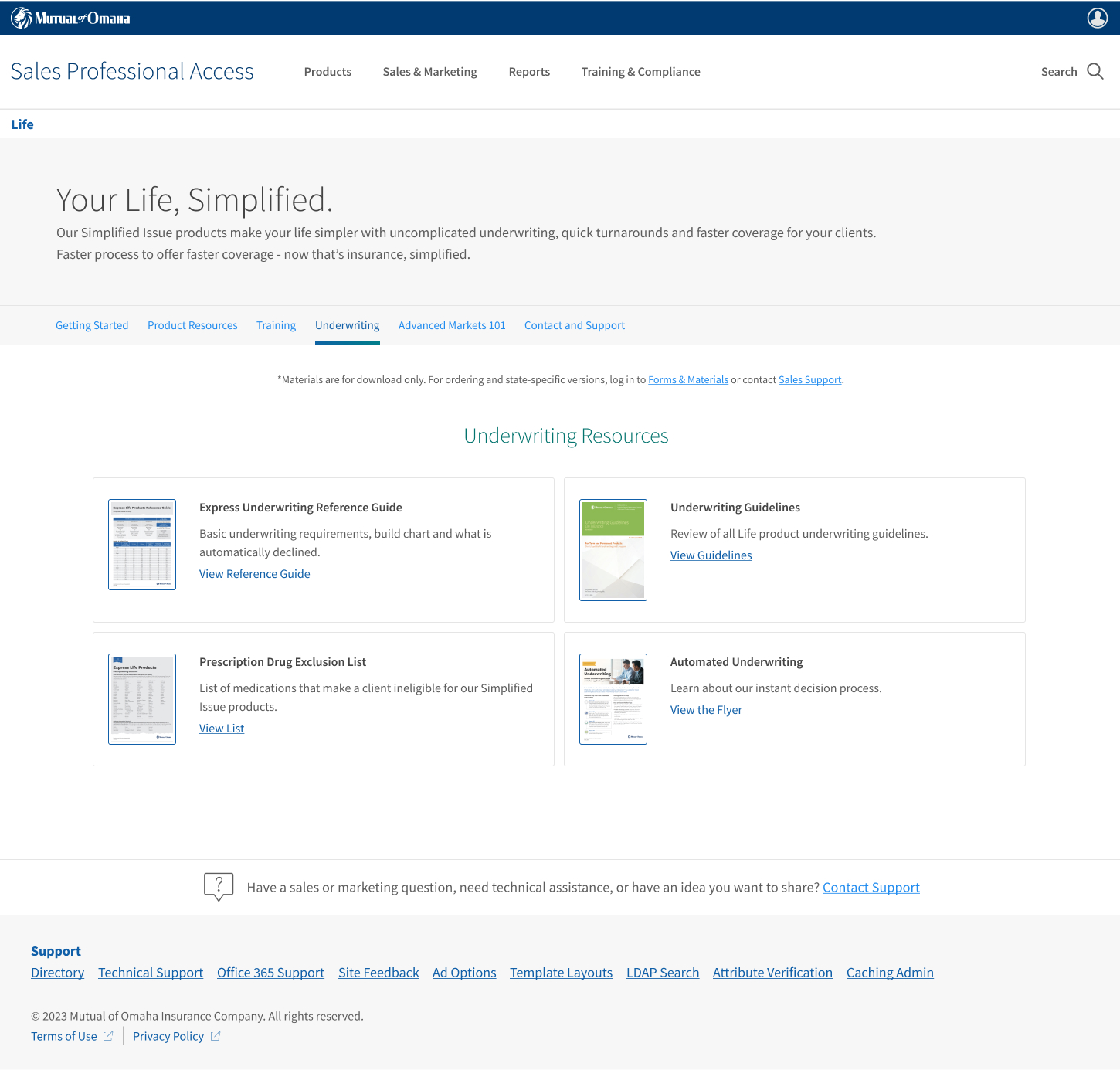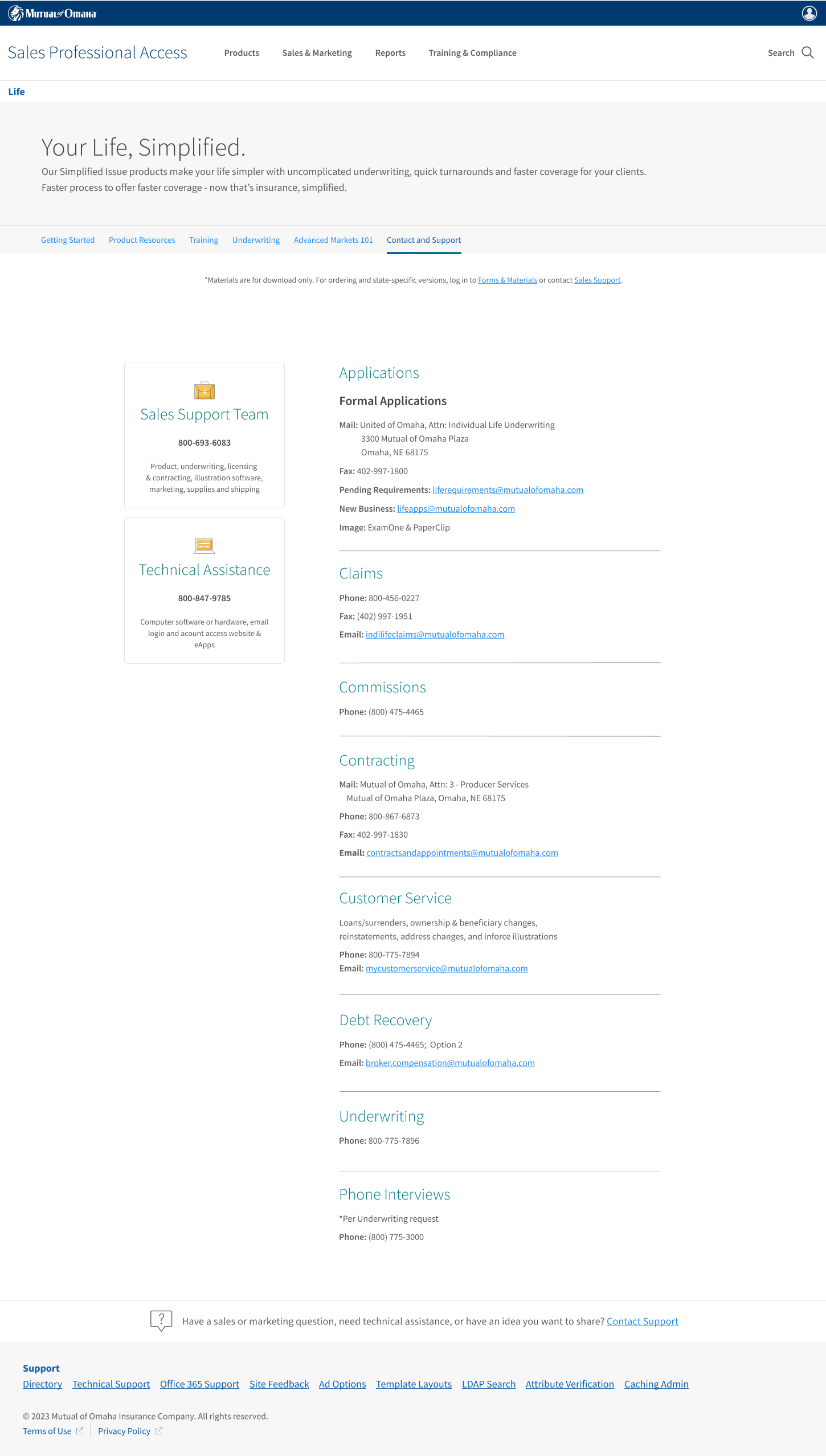 This is the page that underwent the least amount of changes. I focused on prioritizing our most important sections (sales support and technical assistance) as analytics showed they were the most used and looked at.